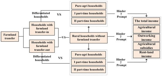 Based on the above, the farmland transfer-in and transfer-out have different impacts on three types of rural households. Therefore, the present study aimed to test the following hypotheses: