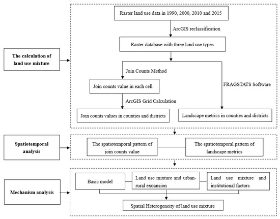 The Section 2 describes the materials and methods used in this study; the Section 3 illustrates the regional differences and spatial evolution of land-use mixtures and presents our empirical results; the Section 4 discusses the results for land-use mixtures; and the Section 5 summarizes our conclusions.