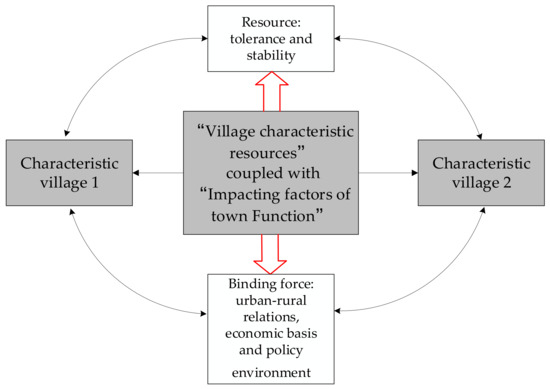 Figure 12. Coupling process of “village characteristic resources” with “impacting factors of town function”.