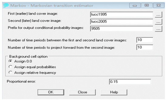 Calculation of land use probability transfer matrix by Markov module.