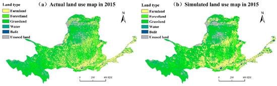 Comparison between simulated and actual land use maps in 2015.