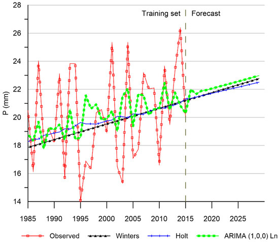 - Rodrigues, J.; Deshpande, A. Prediction of Rainfall for all the States of India Using Auto-Regressive Integrated Moving Average Model and Multiple Linear Regression. In Proceedings of the International Conference on Computing, Communication, Control and Automation, Pune, India, 17–18 August 2017; pp. 1–4. [Google Scholar] [CrossRef]