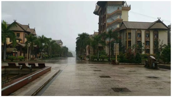 Without enough allocated resources, “one size fits all” standards are often applied by the implementers to cope with the demands of higher authorities [201]. Large amounts of funding were directed to advertising and uniform urban features, like rebuilding streetlights and refurbishing bus stops, under the “Beautiful China” scheme [215]. In many regions, ethnic culture conservation has been simplified into redecorating buildings and residents’ houses in a “minority” style [216,217,218]. For example, the Ximeng county government has reconstructed roofs and exterior walls since the early 2010s (Figure 7) but has not supported the beliefs and other cultural aspects of the Wa people (Figure 5) [219,220,221]. In addition to the Wa people, the cultures of other ethnic groups have been diminished, such as the Lahu, Yi, and Dai people in southwestern China [172,222,223].