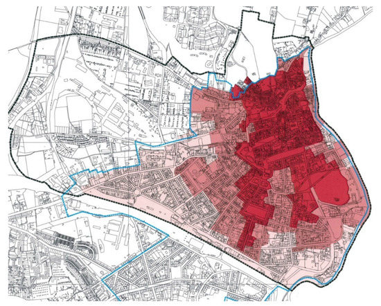 Three zones of urban consolidation—dark red: consolidated area, medium red: area undergoing consolidation, light red: non-consolidated area. Reprinted with permission from ref. [23].