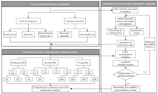 A comprehensive evaluation system was constructed based on the PLE integration with the principles of high feasibility and strong operability. The major steps were as follows: preliminary screening of indicators, expert consultation, determination of weights, determination of scoring standards, distribution of survey questionnaires, fuzzy comprehensive evaluation, correlation analysis of internal factors, etc. In terms of quantitative methods, the statistical method of “reliability analysis and Z-score unified standardization” was adopted to ensure the objectivity of scale analysis. By combining the horizontal PLE coupling coordination analysis with the vertical correlation analysis of the indicators at different layers, the interaction and integration of PLE of traditional villages are quantitatively reflected.