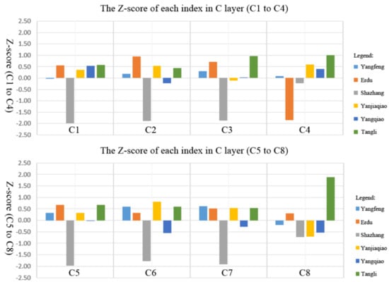 To ensure the results of different dimensions or layers of the fuzzy comprehensive evaluation [60] are comparable, it is necessary to normalize the evaluation vector results in the SPSS software. Z-score processing method is used to convert the data so that they have a mean value of 0 and a standard deviation of 1. The conversion formula is: