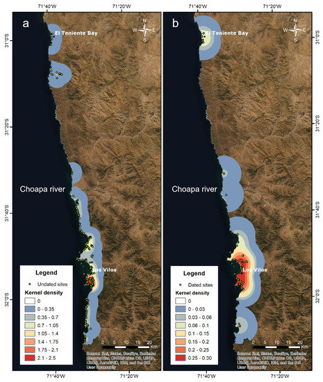 - Jackson, D.; Méndez, C. Reocupando el espacio: Historia de un asentamiento multicomponente, sus relaciones inter-sitios y los cambios paleoambientales de la costa del Choapa. Werken 2005, 6, 97–112. [Google Scholar]