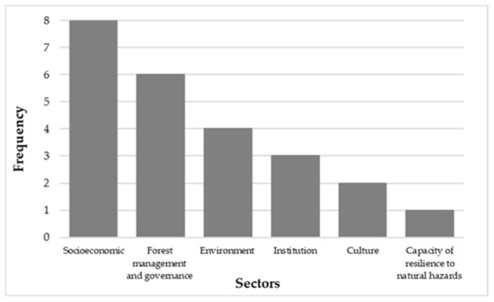Categorization of participant responses from the participatory scenario planning workshops allowed us to identify six sectors that were perceived to be affected by the PES project (Figure 2). The most impactful variables, according to the participants, were socio-economic factors and forest management and environment, while institutional, cultural and the capacity to withstand natural hazards were of lesser importance.