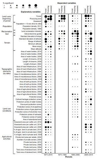 | Selected Explanatory Variable | Forest | Producing Land | Meadow/Pasture | |||||||||