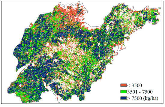Potential yield of Shandong Province simulated by the GAEZ model.