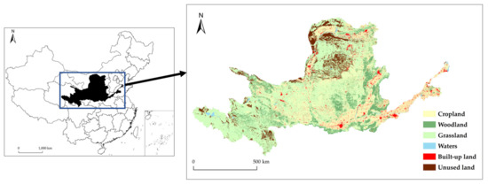 Overall, the existing researches have realized the quantitative evaluation of land use benefits to some extent. Most scholars’ researches were mainly through the establishment of a land use benefit evaluation index system. However, the selection of indicators tended to focus solely on economic and social output, without considering changes in the land itself and the benefits of different types of land use. Different types of land’s material outputs and effective values are likely to be different. Changing the land use types can result in changes in land use benefits. These should not be ignored in assessing benefits. Additionally, most of the research scales were still relatively single, only focusing on administrative division units. However, administrative unit research data are readily impacted by administrative factors. In addition, due to the influences of different natural and social conditions, inevitably, the data type framework is not unified, which is not conducive to the integration of natural and cultural data [19]. The researches on micro grid-scale remain to be innovated. Therefore, this study added the land use status factor in the selection of the index and selected the geographic grid-scale, trying to solve the following two scientific problems: (1) How to assess land use benefit and discuss its change from the angle of land use pattern; (2) How to break through the restriction of the administrative division unit, realize the integration of natural and cultural data, and observe the spatial heterogeneity of land use benefit from the perspective of the whole region.