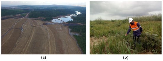 OB materials are very difficult to use directly as a growing medium due to their chemical–physical properties that are not suitable for plant root growth. OB materials are structureless with high bulk density due to the movement of heavy machinery and often contain an elevated concentration of traced metals. Their characteristics hamper water circulation, limiting their capability to support the growth of plant roots [53,54]. Therefore, sowing topsoil over the arranged OB materials will serve as a growing medium for revegetation plants [55,56].