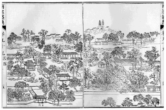 - Mei, J. Su Cheng Hao, Chengli Ban Yuan Ting: Qianlong Gusuchengtu Zhong de Yuanlin Yongdi Guimo Ji Fenbu Yanjiu. Zhong Guo Jian Zhu Shi Lun Hui Kan 2010, 3, 217–504. [Google Scholar]