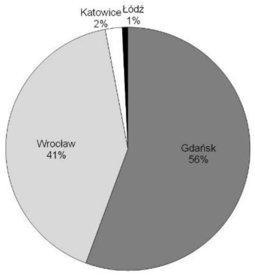 Taking into consideration the image of the cities, two mature tourist destinations were chosen—Gdańsk and Wrocław—and two other cities which are perceived mostly as industrial areas—Katowice and Łódź, which have been developing their touristic functions for several years now. The other criterion was the location. Gdańsk and Wrocław are located in more attractive regions for tourists than Łódź and Katowice. The seaside location of Gdańsk makes it much more attractive than the other chosen cities. It is both the final destination for tourists, and a place that attracts seaside visitors. Wrocław is a gateway to the mountainous area of Sudetes. It is also located on transit routes to Czechia and Germany. As a mature tourist destination, it is visited both as a final destination, and along the way to other destinations. Katowice and Łódź both have good transport links. They are located by main highways—Katowice near the A4 and A1, and Łódź near the A1 and A2. Katowice is part of the Upper Silesian urban area—the most industrialised part of Poland. Łódź is surrounded by a monotonous landscape of central Poland plains. As these latter cities are strongly perceived as industrial areas, they are not often visited along the way, nor are they final tourist destinations. Wrocław and Gdańsk have many important historical monuments. Many gothic renaissance and baroque monuments are also located in these cities. Wrocławs Centennial Hall is listed as a UNESCO World Heritage Site. National museums in Wrocław and Gdańsk have collections of important paintings. Łódź and Katowice are developing tourism based on their industrial heritage. In Katowice, this is based mostly on old coal mines and steelworks. In Łódź, the emphasis is on textile factories. Old industrial buildings have been turned into museums, concert halls, shopping malls, and conference centres. Łódź is also known for its XIX century multicultural industrial city landscape.