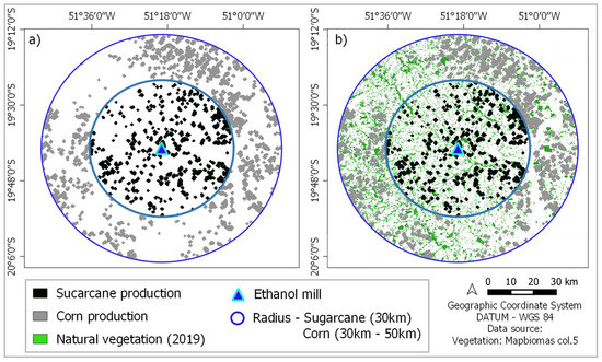 This section describes the general procedure for identifying the regions where the production of biomass would be adequate. At this point, specific conditions for producing feedstocks (e.g., required climatic parameters) were not taken into account; the procedure for classifying areas according to the suitability for specific crops is presented in the following section. This section also helps to justify the focus on the 12 previously mentioned Brazilian states.