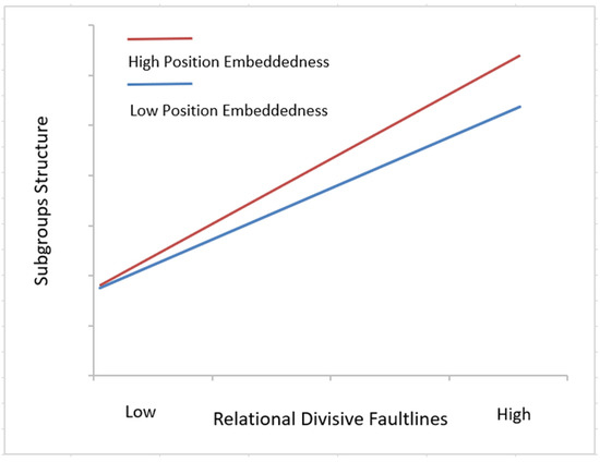 2.2.3. The Moderating Role of Position Embeddedness on the Relational Divisive Faultlines and Subgroup Structure