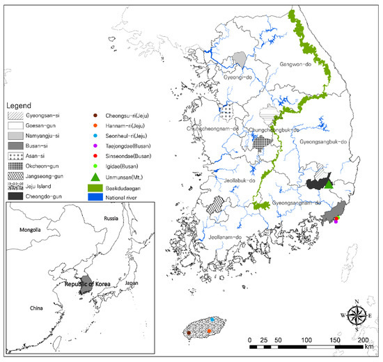 - Lee, S.; Miller-Rushing, A.J. Degradation, urbanization, and restoration: A review of the challenges and future of conservation on the Korean Peninsula. Biol. Conserv. 2014, 176, 262–276. [Google Scholar] [CrossRef]