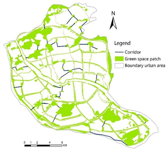 In the process of rapid urbanization, green space enhances urban ecological safety and the inhabited environment. Research on urban green space systems is key to settling the problem of urban inhabited environments [10]. Green space ecological networks derive from the extended concept of urban green space systematism, networking, and greenway. Presently, the concept of green space ecological networks and the planning method is continually developing. It is widely applied and practiced in some developed countries [4,11]. There are obvious effects from the controlling of disorderly urban expansion. Namely, ecological networks can solve the problem of intensified and fragmented land use and safeguard the survival of the natural populations of species and threatened habitats [9]. Ecological green network planning mainly includes green spot node selection, ecological corridor construction, and ecological green network optimization. For the selection of green nodes, most researchers currently use green spaces that have been evaluated as having significant ecological value as ecological network nodes. Others choose key green spaces as network nodes through quantitative analysis of landscape connectivity [12,13,14,15,16]. Further improvement, however, is needed in judging the selected patches and the reasonable degree of potential for constructing corridors, as well as in optimizing the ecological green network [17,18,19]. As a result, the development of green space networks is increasingly considered a suitable approach to improve the ecological value of urban green space and the urban environment [20,21]. Moreover, various methods and principles of landscape ecology have been applied to green space ecological network planning, such as landscape pattern metrics and network analysis [22]. However, less attention has been paid to the method integrating landscape metrics with network analysis in the planning of urban green space ecological networks [23].