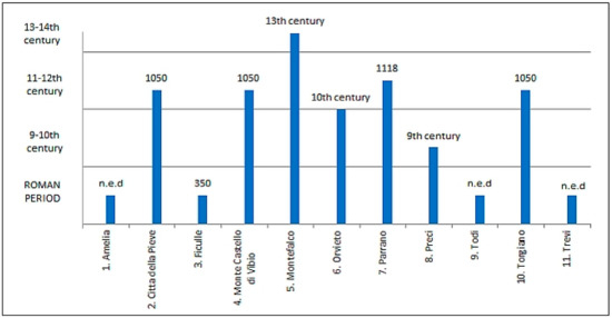 Italian towns differ considerably in founding dates because they were established from Roman times to the Medieval period (Figure 2 and Figure 3).