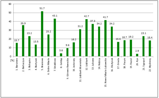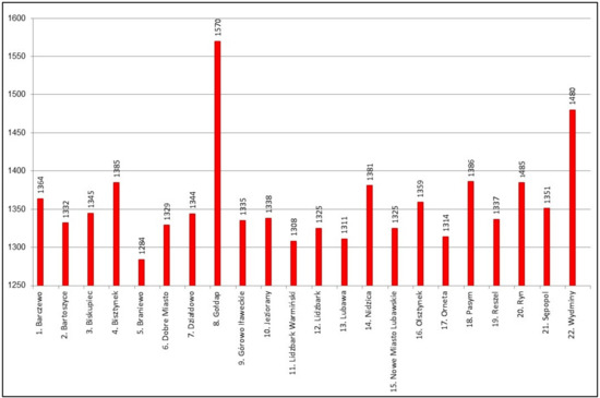 The analyzed towns have evolved over the centuries. Their present size and population differ significantly from the original figures, but similarly to Italian towns, their historical layout can still be identified. The study analyzed 22 towns in the Polish Voivodeship of Warmia and Mazury: Barczewo, Bartoszyce, Biskupiec, Bisztynek, Braniewo, Dobre Miasto, Działdowo, Gołdap, Górowo Iławeckie, Jeziorany, Lidzbark Warmiński, Lidzbark, Lubawa, Nidzica, Nowe Miasto Lubawskie, Olsztynek, Orneta, Pasym, Reszel, Ryn, Sępopol, and Wydminy.