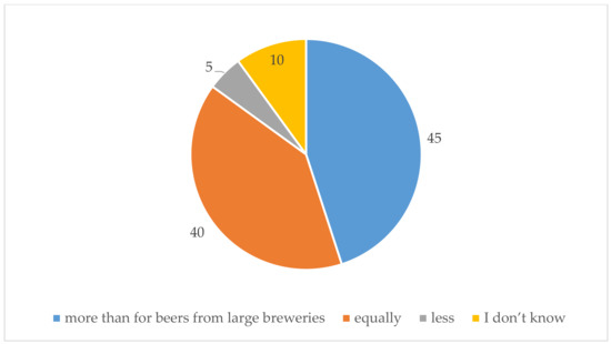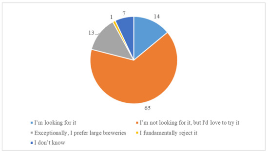 A survey conducted in 2017 by the Ipsos agency for the Association of Small and Medium-Sized Enterprises (AMSP) [34] shows that every seventh tourist even actively searches for breweries or restaurants where they have their own brand of beer as a tourist destination. Even though two thirds of tourists do not purposefully look for a small brewery, if they come across it, they prefer to taste the beer. Only one percent of domestic beer fans fundamentally reject beer from microbreweries (Figure 5).