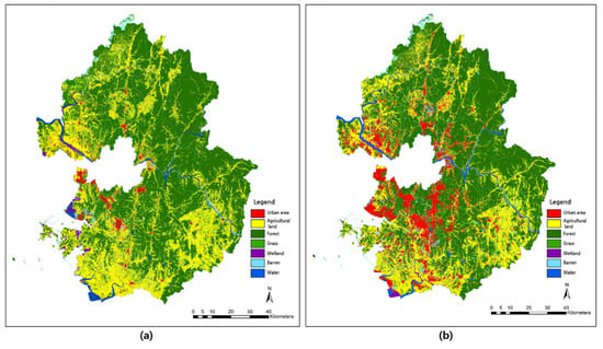 (a) Landcover map (1988) and (b) land cover map (2018).