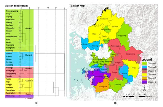 - Song, M.K.; Chang, H. Characterization of Cities in Seoul Metropolitan Area by Cluster Analysis. J. Korean Soc. Geospat. Inform. Syst. 2010, 18, 83–88. [Google Scholar]
