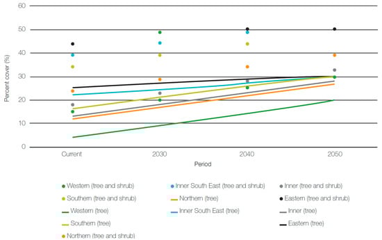 Urban populations are growing [7], and many cities are densifying [8]. Densification can place pressure on canopy cover and other elements of vegetation in urban environments [9,10]. Acknowledging the many benefits of urban vegetation, and particularly trees, many city municipal governments have responded through developing urban forest strategies and targets [11]. It is atypical for urban forest strategies to be undertaken by coalitions of local government authorities (LGA). They are more typically undertaken by an individual LGA, as this is the extent of their jurisdiction (e.g., [12,13]).