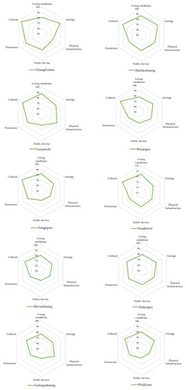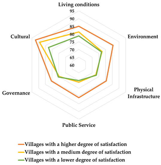 | Villages with a medium degree of satisfaction | (74.69,80.90) | Wanjigou, Zengjiban, Songbaozi, Ma’erzhuang |