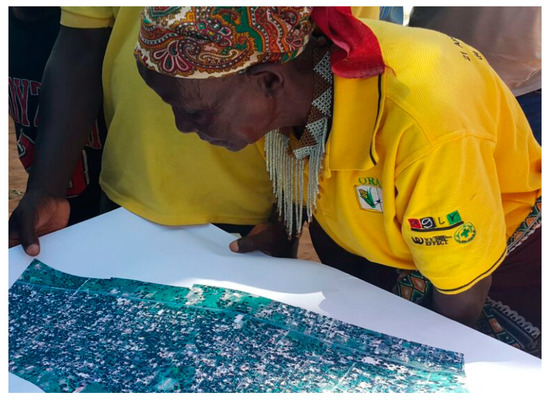 Teaching a “Queen” (female community leader) to read the map.