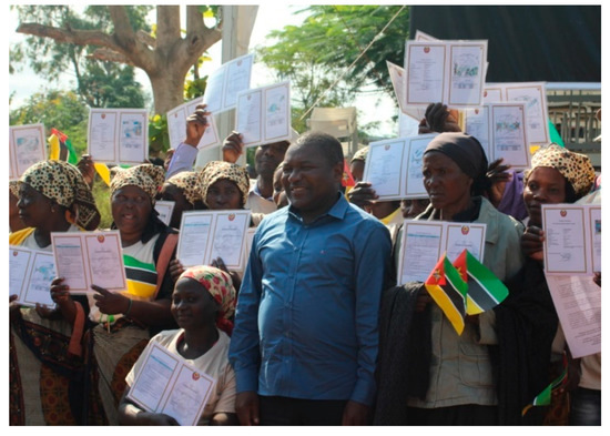 The legal and regulatory framework determined that the land belongs to the State, and it cannot be sold nor alienated. The land law is generally accepted as favorable to reduce inequality in access to land and security of tenure, to protect the poor and the communities through community delimitations and registration of good-faith and customary occupations [35]. However, as more than 80 percent of the land under good faith or customary occupations is not registered [36], there have been complaints of land grabbing, causing dissatisfaction and insecurity among those more vulnerable who cannot defend themselves. This results from increased pressure on the land, mainly due to the aftermath of a 16-year civil war, climate changes, weak soil management policies, large-scale project investments including the extractive industry, and the need for food and fuel [37]. This situation is particularly relevant for women and other vulnerable groups since that the percentage of land registered for these segments of society is less than 20 percent [38].
