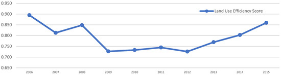 The overall (average) land use efficiency score trend for the total of studied cities in Shanxi Province from 2006–2015.