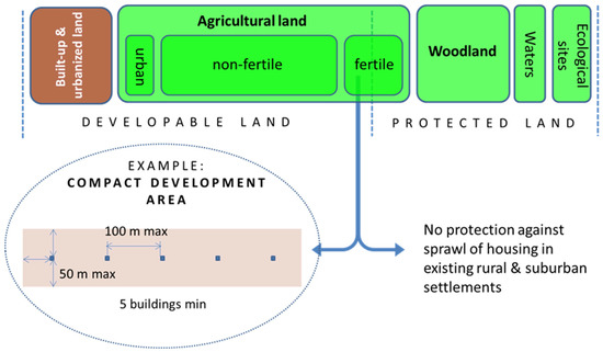 Land not to be urbanised consists of two subtypes: ordinary rural land and rural land of special protection. The ordinary rural land is protected by the general local structure plan via various regulations (e.g., minimal, indivisible surfaces of plots) from uncontrolled subdivision and development. The rural land of special protection is additionally protected according to the provisions of sectoral legislation.