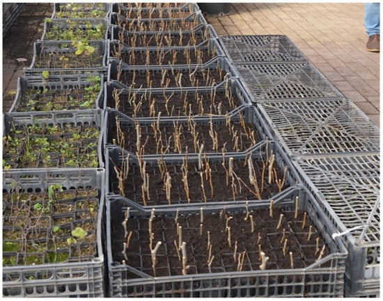 It is of primary importance that the plant material is gathered and selected from autochthonous germplasm by skilled personnel who have expert knowledge of when to harvest the seeds and/or cuttings, and the most reliable techniques for the harvest, storage, and multiplication of the propagation material. With this aim, portions of plants were collected on site to be used as cuttings (Figure 8).