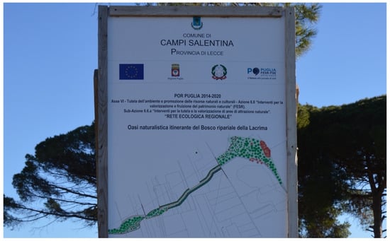 The project information is available on https://www.comune.campi-salentina.le.it/amministrazione/attivita/bandi-di-gara-e-contratti/item/por-puglia-f-e-s-r-f-s-e-2014-2020-realizzazione-di-progetti-per-la-rete-ecologica-regionale-oasi-naturalistica-itinerante-del-bosco-ripariale-della-lacrima (accessed on 23 August 2021).