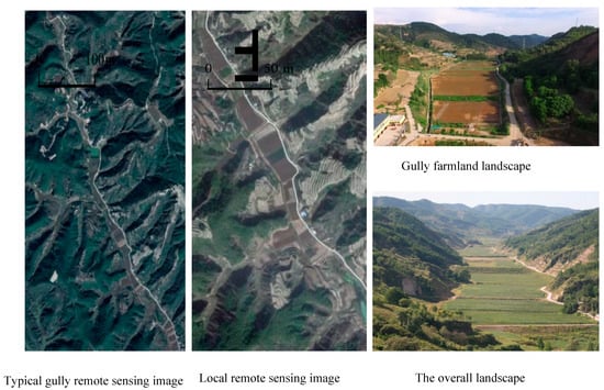 The data used in this study are mainly divided into two categories: remote sensing data and socio-economic data. The socio-economic data were mainly obtained through field surveys, field interviews, and statistical yearbooks. Field interviews mainly include four dimensions: natural ecological dimension, farmers’ livelihood source and improvement dimension, agricultural planting and development dimension, ecological landscape, and environmental safety dimension. The remote sensing data originated from the United States Geological Survey (USGS) during 1995–2018 (http://glovis.usgs.gov/) and Landsat image data with a spatial resolution of 30 m from 1995 to 2018 were selected as the basic data for extracting gully farmland. The land use types were interpreted by referring to the classification method of CAS’s resource and environment information database in 2018 (http://www.resdc.cn/). Besides, the crop vegetation grew luxuriantly from April to October, and the identification accuracy of the image was higher than in other months. After testing, the accuracy of the land-use types was over 85%.