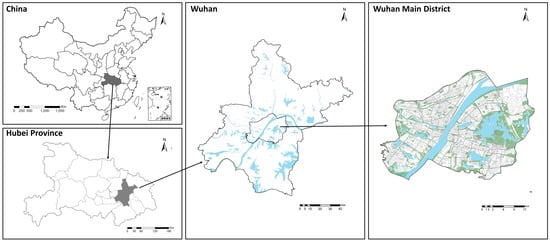 Wuhan (113°41′–115°05′ E, 22°29′–31°58′ N) is the capital city of Hubei Province and the central city of Central China. It is located in the eastern part of the Jianghan Plain and the middle reaches of the Yangtze River where the Yangtze River, the third-largest river in the world, and its largest tributary, the Han River, converge in the city. Wuhan’s water area accounts for a quarter of the total area of Wuhan city. With 166 lakes of all sizes, Wuhan is also known as “the city of a hundred lakes” [].