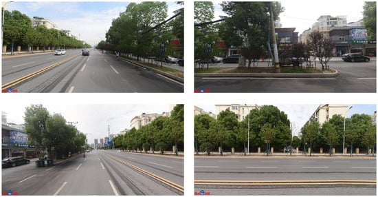 In recent years, an increasing number of street-view images have been used for urban research applications []. Baidu Maps Street View has a higher collection frequency and a wider collection range in China than other providers. The Baidu Maps software, developed in 2005 by Baidu.com in Beijing, China, started releasing street maps in 2013 [], which are available for users to browse along with an application programming interface (API) to download. The road network data within the study area were sampled at 300 m intervals, and point data with latitude and longitude coordinates were generated. We retrieved street-view images at each point location via the Baidu Maps API and automatically obtained location-specific street-view images in May 2021 through the following URL: http://quanjing.baidu.com/apipickup/ (accessed on 12 May 2021).