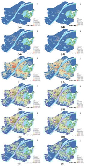 Figure 17 shows the spatial visualization of vitality. Block vitality forms a high-value agglomeration in southeastern Hankou and decays with increasing distance. The Wuchang area has created a major vibrant belt dominated by Yellow Crane Tower—Wuhan University–Huazhong University of Science and Technology. The Hanyang area forms a vibrant belt distributed along the Hanshui. Both Zhuankou and Wugang are large industrial parks in Wuhan; however, the vitality value of Zhuankou area is marginally higher than that of Wugang area, which was built later and has better development momentum. The vitality of the residential area west of Wugang Avenue is significantly higher than that of the factory area on the east side.