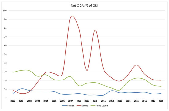 We consider Guinea, Liberia and Sierra Leone for various reasons. Firstly, because they are underrepresented in the literature. Secondly, because they are least developing countries; 50% of the financial resources for development are ODA (Inter-Agency Task Force on Financing for Sustainable Development 2019 [14])4. Thirdly, despite suffering from the Ebola outbreak, they show remarkably positive results in poverty reduction.