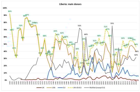 Main donors to Liberia. Source: Authors’ elaboration with data from OECD-DAC Table 2a: net ODA total net disbursements in constant USD, 2018.