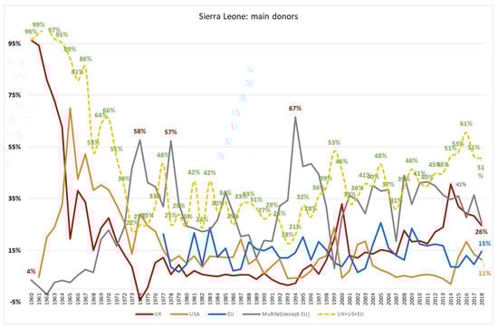 Main donors to Sierra Leone. Source: Authors’ elaboration with data from OECD-DAC Table 2a: net ODA total net disbursements in constant USD, 2018.