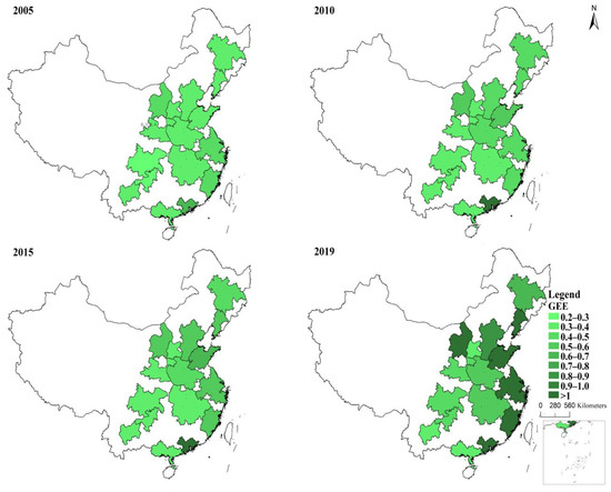 In the context of increasingly serious resource and environmental challenges (resource bottlenecks, water and air pollution, environmental degradation, biodiversity loss, climate change, etc.), there has been a growing consensus among economic elites and policy makers about the need for changing the traditional resource-intensive growth paradigm, and “green growth” has emerged as an essential theme of global discussion on development policy [1,2,3,4]. Around the time of the Rio+ 20 United Nations conference on Sustainable Development, a range of flagship reports on “green growth” were published by leading international organizations. According to those reports, “green growth” can be defined as promoting economic growth while substantially reducing environmental damage, ecological scarcities and unsustainable use of resources, and green utilization efficiency of urban land (GUEUL) generally reflects the capacity to maximize urban economic output with a certain level of land and other inputs while minimizing the undesirable outputs (e.g., environmental pollutants). In recent years, a rapidly expanding literature has been devoted to measurement and analysis of GUEUL [5,6,7,8,9,10]. Another essential concept in the field of sustainable development is green infrastructure (GI), which generally refers to a strategically planned network of natural and semi-natural areas designed and managed to deliver a variety of ecosystem services [11]. Since GI provides a wide range of ecological (climate change mitigation, biodiversity conservation, etc.), economic (tourism, increased land values, etc.) and social benefits (education, enhancement of social cohesion, etc.), it plays a vital role in promoting sustainable utilization of urban land [12,13,14]. It is noteworthy that a significant proportion of existing literature on GI pays attention to urban and peri-urban landscapes [11].