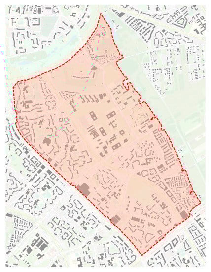 The main objective of the study was to describe the spatial structure of a selected part of the city with the use of tools based on spatial relationships between individual elements included in a given image of this part of the world. Such possibilities are provided by geographic information systems (hereinafter GIS) [44], in which a given part of the world is described by means of overlapping layers with information about its various components, e.g., waterways, building blocks, buildings, streets, etc. The advantage of such a description of a fragment of reality, is the possibility to find spatial relationships between objects from several layers, e.g., if you have overlapping layers of buildings and quarters, you can indicate which of these quarters are covered with buildings to the greatest extent. It is also the definition of the urban coverage index (% PZ) used in urban and spatial planning. In order to calculate the values of this and other urban indicators described later in the article for each individual quarter of development in a selected area with the use of GIS systems, it was necessary to obtain spatial data and verify the relevance and usefulness of the relevant attributes.
