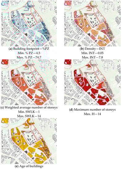 The indicators mentioned in the list by Ziobrowski are mainly used when conducting research on the existing city structures—in their inventory, searching for relationships, e.g., between the type of buildings and the values of indicators, or between the location of the facility in the city structure and its value on the real estate market.