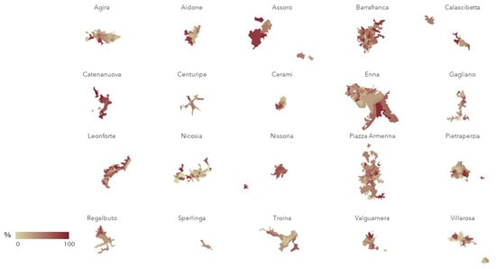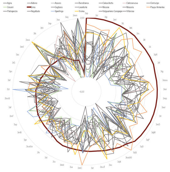 | Calascibetta | −13.4% | −19.1% | −14.1% | 3.7% | −3.7% | −7.0% | −8.9% |