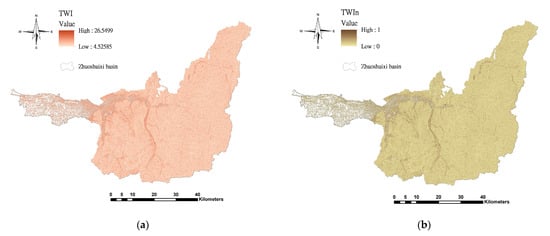 (a) The topographic wetness index and (b) the normalized topographic wetness index.