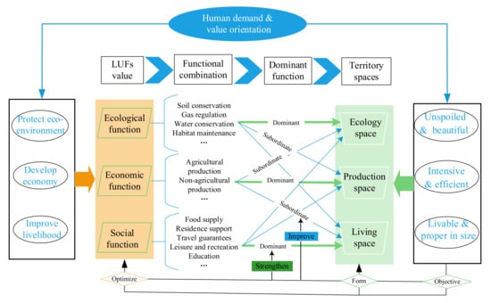 - Zhou, D.; Xu, J.C.; Lin, Z.L. Conflict or coordination? Assessing land use multi-functionalization using production-living-ecology analysis. Sci. Total Environ. 2017, 577, 136–147. [Google Scholar] [CrossRef]