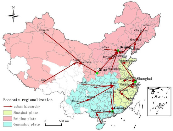 Second, the national urban hierarchy was established through the proposed hierarchical analysis algorithm, and based on the urban hierarchy study identified the economic spatial structure of three plates based, i.e., economic plates of Beijing, Shanghai, and Guangzhou. The Beijing plate was mainly from north China and northeast China where the economy is now relatively backward; that of Shanghai was mainly in east China, and that of Guangzhou was mainly in south and southwest China.