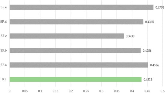 Figure 5 shows the performance of the TIS of DT in the Andalusian olive landscape according to the opinion of the knowledge-generating agents. Thus, it can be seen that in the sub-functions where it performs best are (from highest to lowest): SF.e ‘The quality of the transfer processes in DT is satisfactory’, and SF.a ‘There are enough organisations that carry out KT on DT in the olive sector in Andalusia’. In the sub-function where it performs worst is SF.c ‘KT between knowledge-generating organisations (research centres and/or ICT companies) and end-users (agri-food companies) is sufficient’.